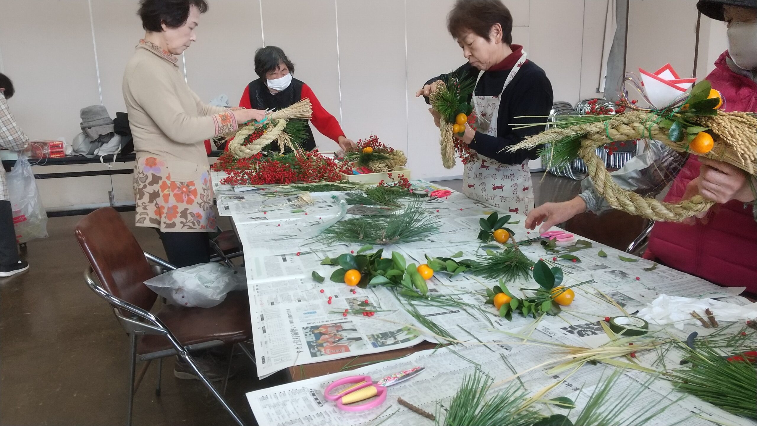 女性部活動で しめ縄作り!