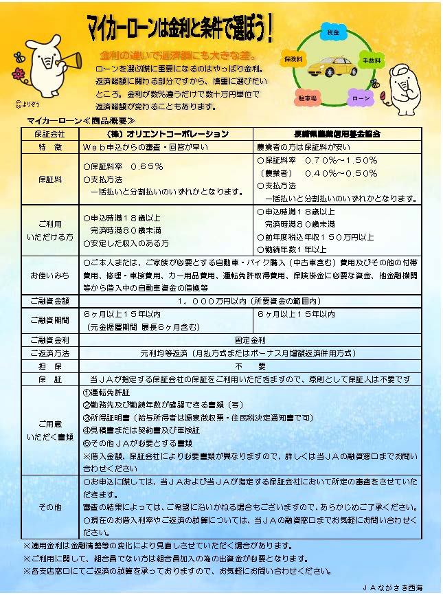 ただし、保証会社(長崎県農業信用基金協会、(株)オリエントコーポレーション)の保証が必要となります。