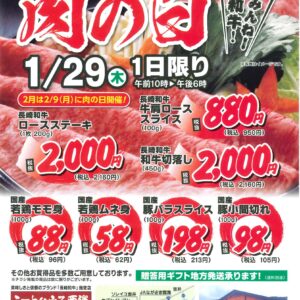 【ミートハウス西海】1/29肉の日セール開催のお知らせ