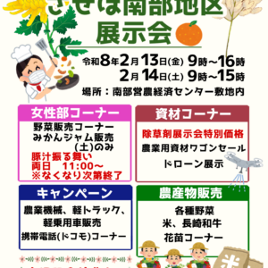• 2026年02月05日(木)お知らせ2/13~14させぼ南部地区展示会の開催について