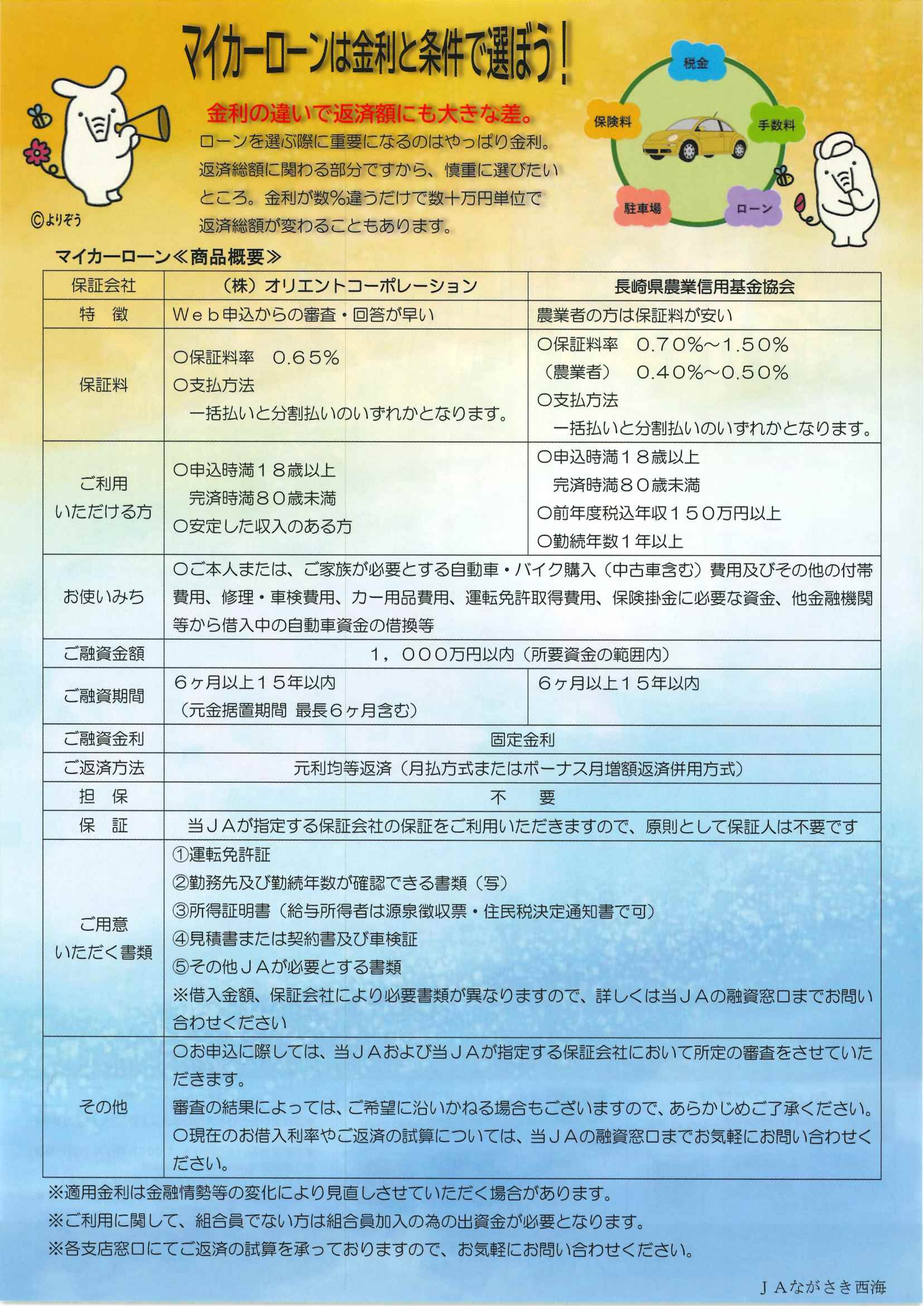 JAながさき西海では本日よりJAマイカーローン特別金利キャンペーンを実施しています。