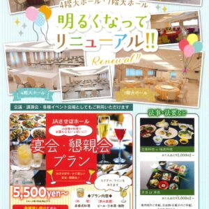2025年08月19日(火) / 最終更新日時 : 2025年08月19日(火) jasaikai お知らせ 【JAさせぼホール】リニューアルのお知らせ いつもJAさせぼホールをご利用いただきありがとうございます。 このたび当ホールの4階大ホール、7階大ホールをリ […]